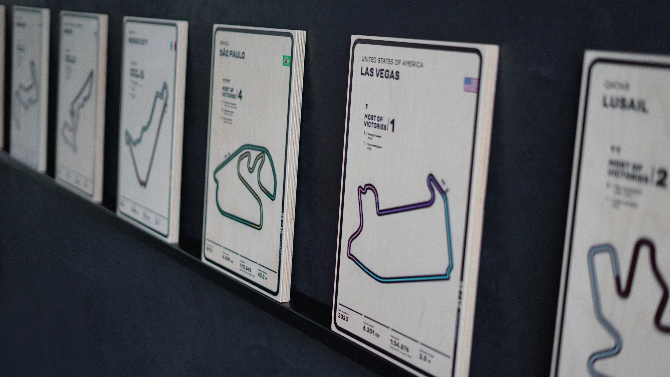 Crafted from premium multiplex wood and brought to life with embossed 3D printing, these F1 track artworks turn racing heritage into tactile design. Each piece is a limited edition, elegantly presented in premium packaging—made to be collected, displayed, and admired.